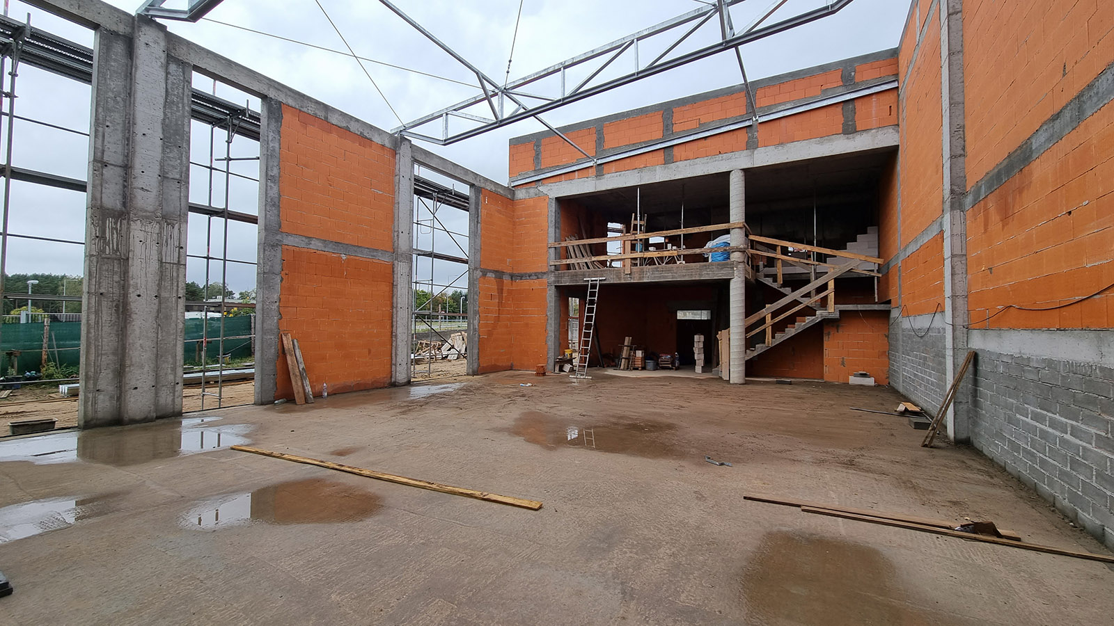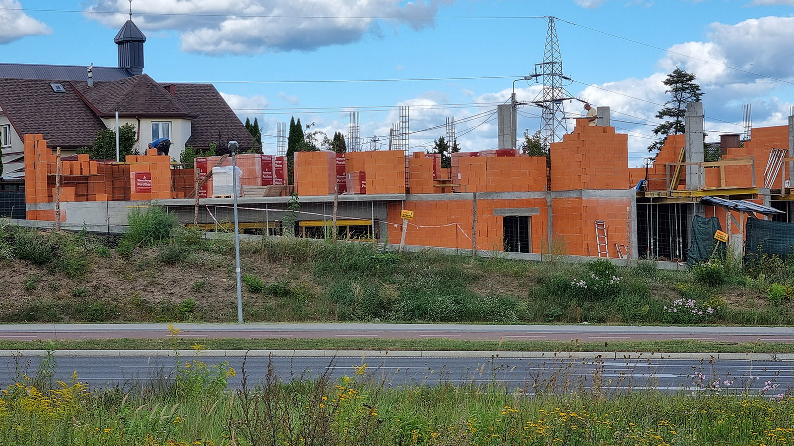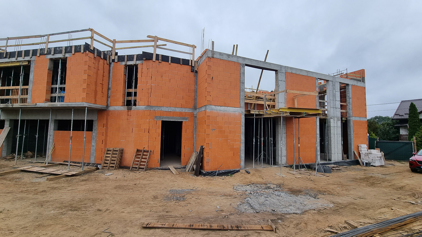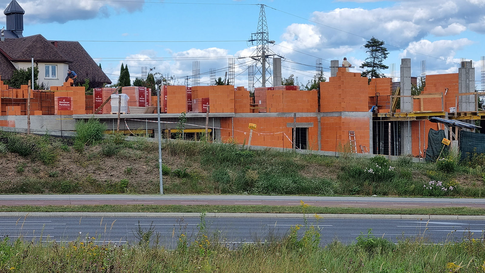 Z uwagi, iż budynek został posadowiony na zboczu skarpy zastosowano żelbetowy mur oporowy o wysokości 3 metrów.