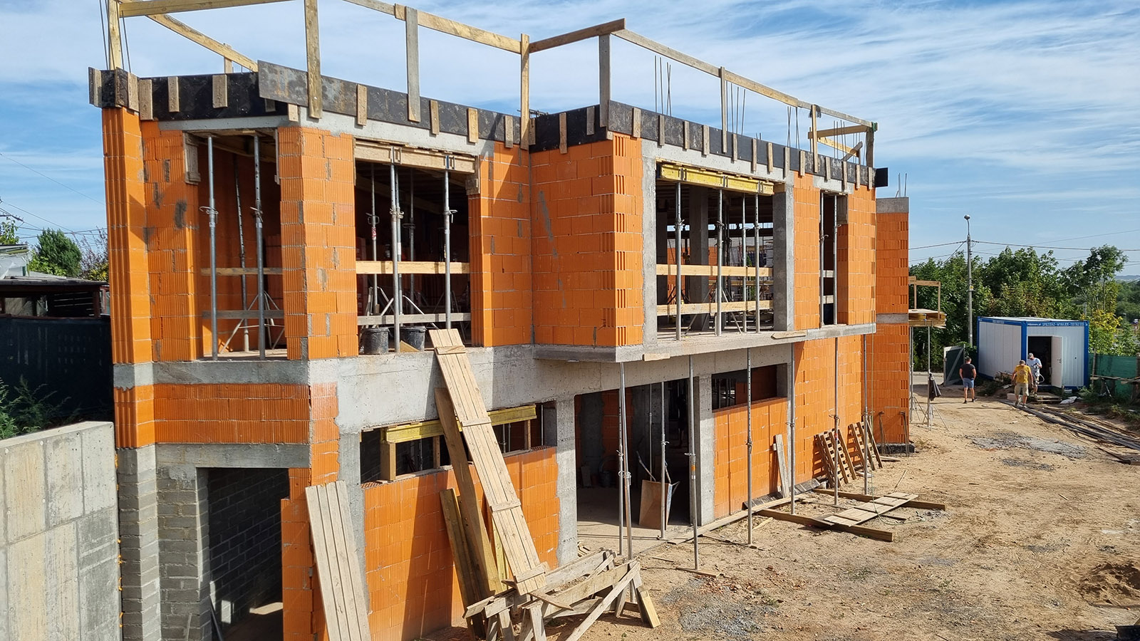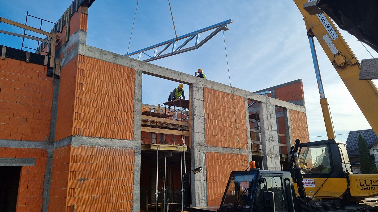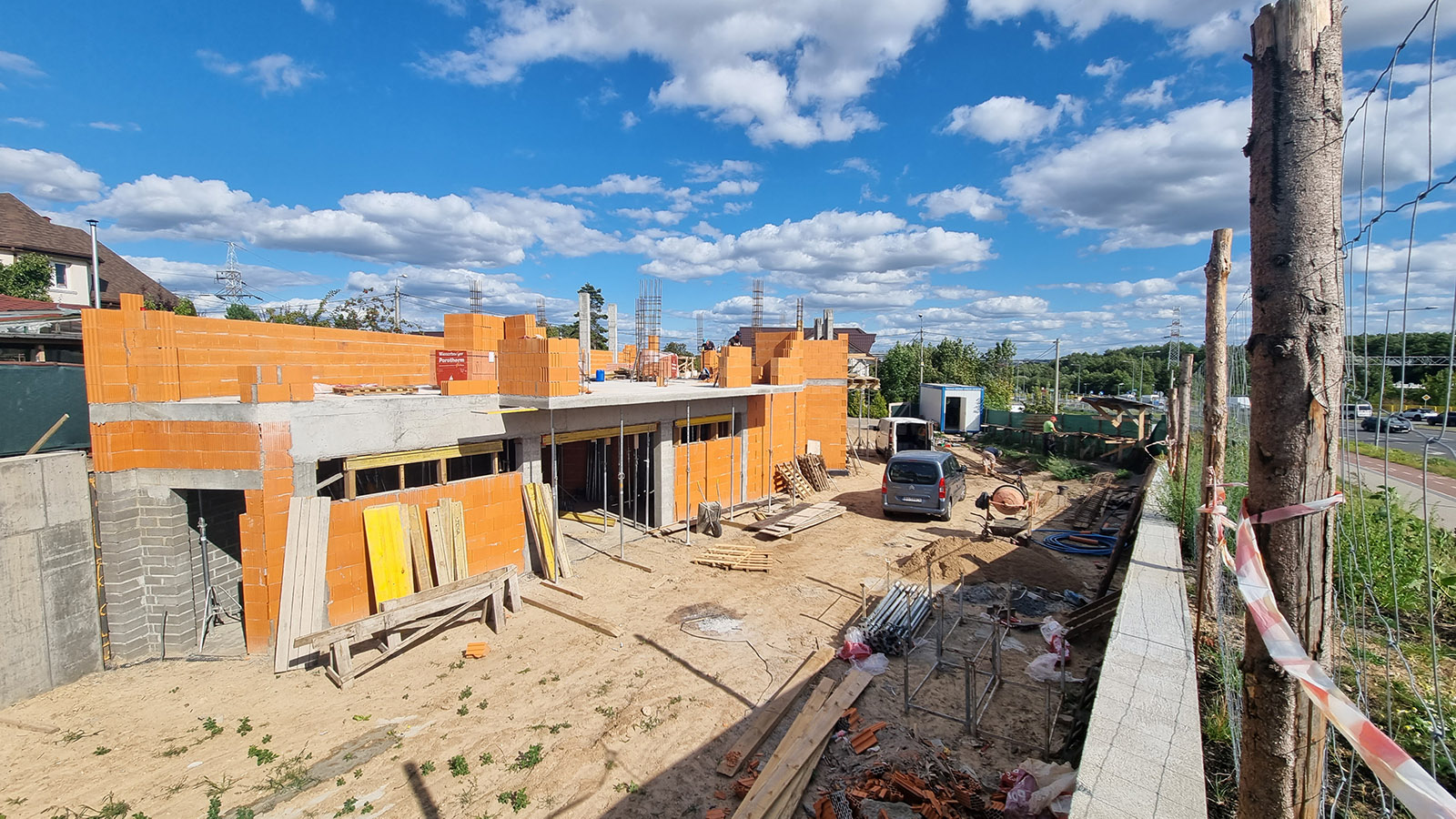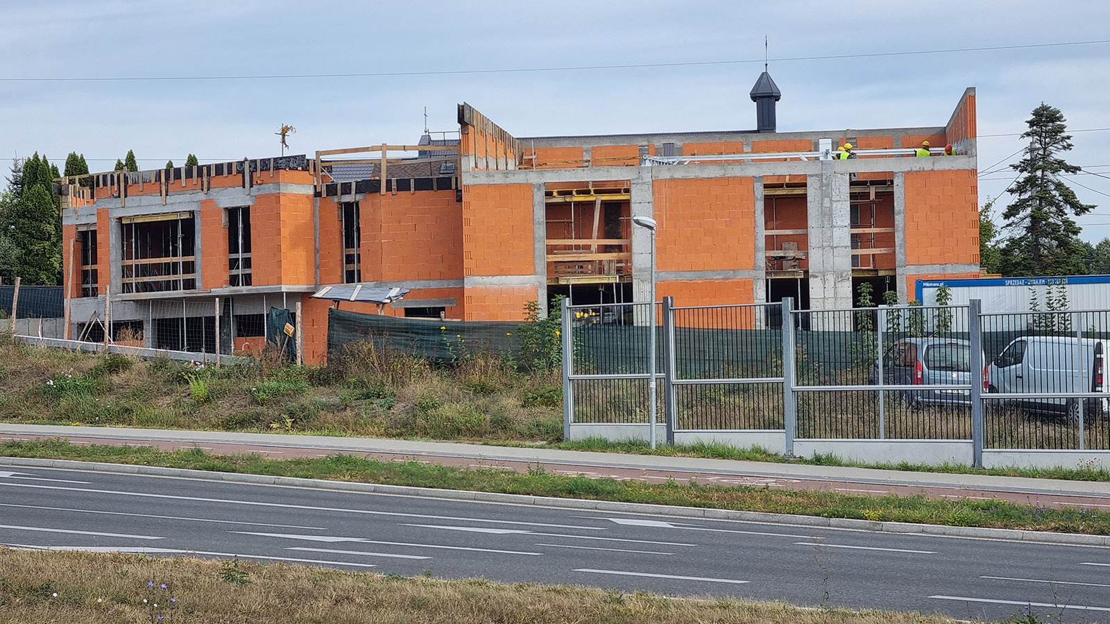 Z uwagi, iż budynek został posadowiony na zboczu skarpy zastosowano żelbetowy mur oporowy o wysokości 3 metrów.