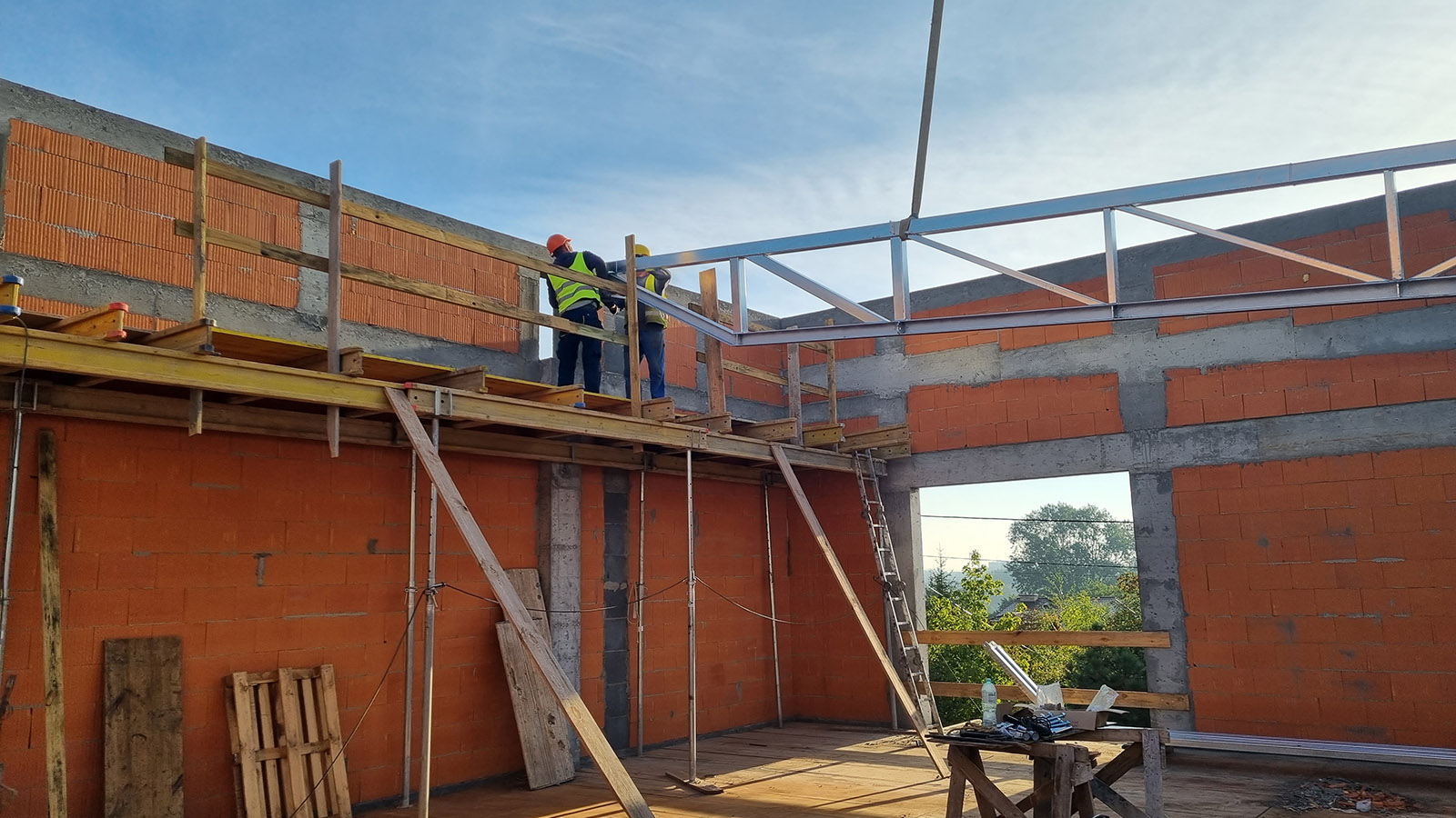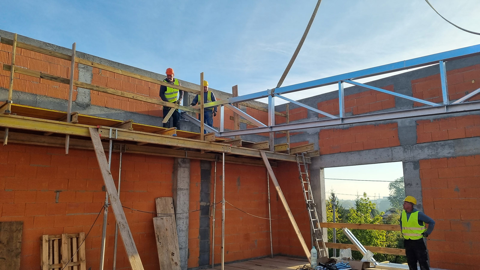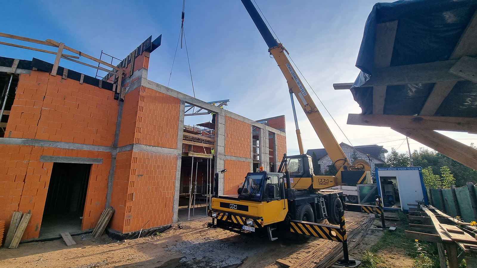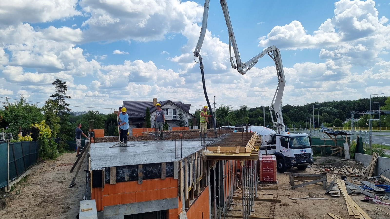 Z uwagi, iż budynek został posadowiony na zboczu skarpy zastosowano żelbetowy mur oporowy o wysokości 3 metrów.