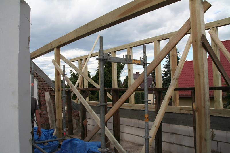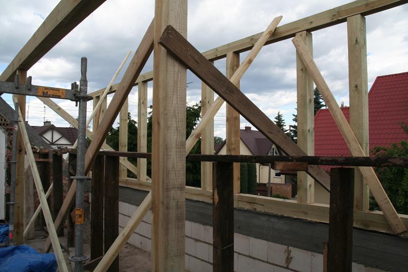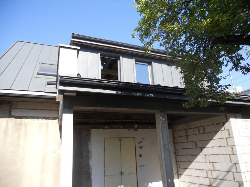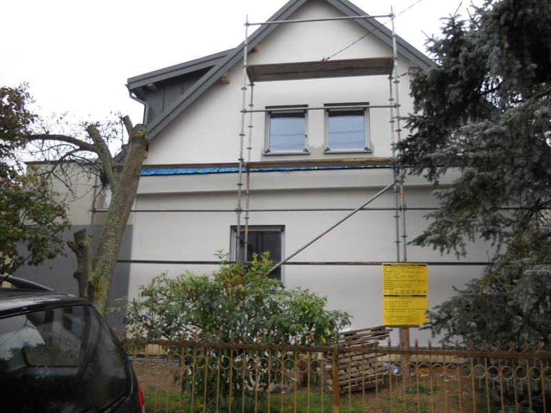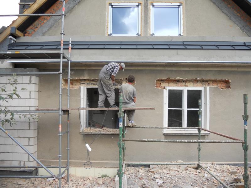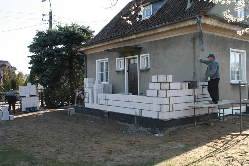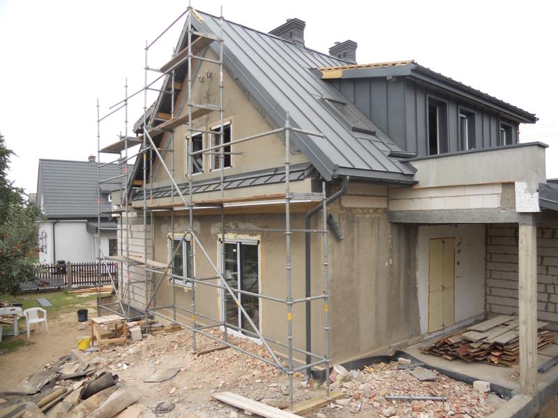 Budynek został powiększony o attykę, garderobę, wiatrołap, a także rozbudowę łazienki. Dodatkowo podwyższono i wymienioną na nową całą konstrukcję dachową. Dzięki temu piętro uzyskało dużo większą przestrzeń i umożliwiło bardziej ekonomiczne rozłożenie pomieszczeń. Rozbudowane elementy zostały wykonane z bloczków NF6 na zaprawie cementowo-wapiennej, pokrycie dachowe oraz fasady zostały obłożone blachą panelową Rukki Classic w kolorze grafitowym, kominy wykonane z cegły klinkierowej NF10. Trzy szybowe, pięciokomorowe okna firmy Petecki z Łodzi. Zachęcamy do obejrzenia galerii z realizacji.