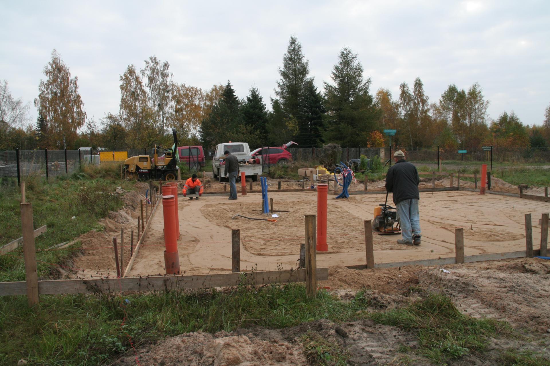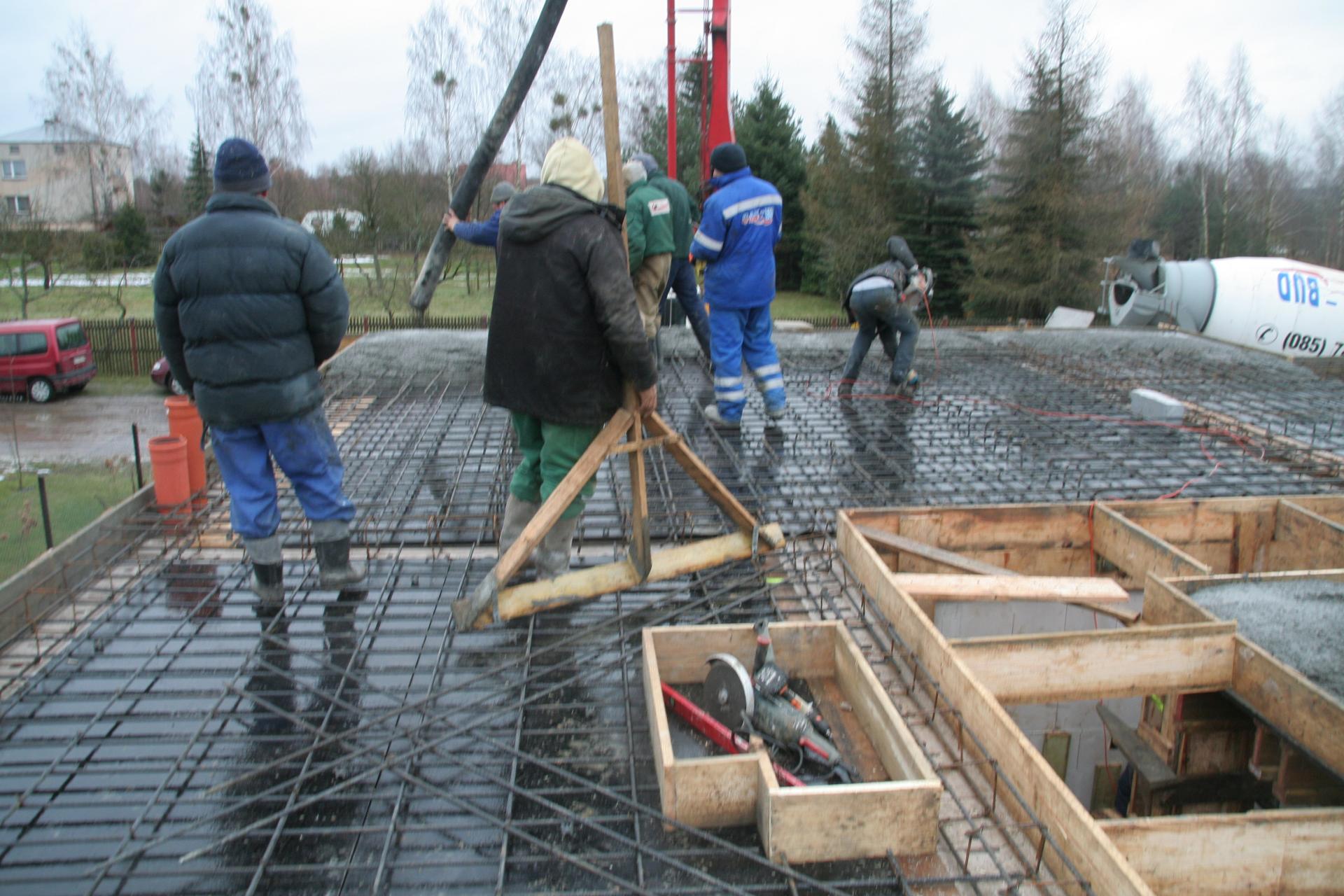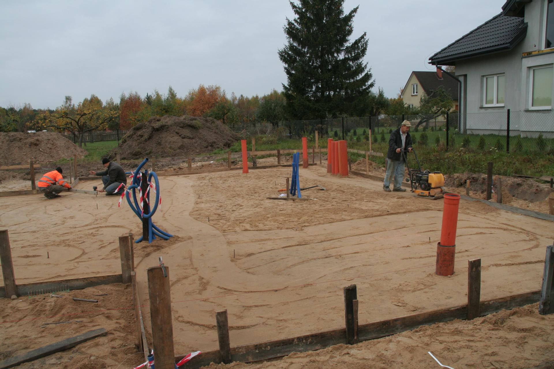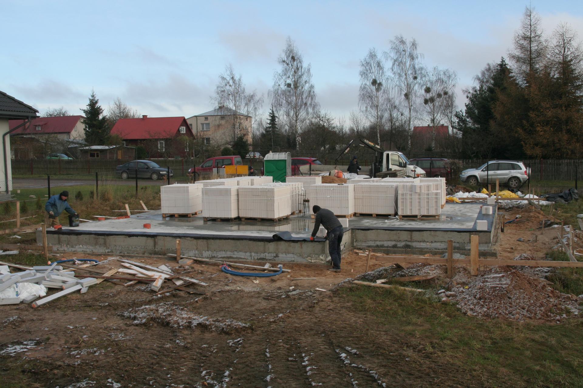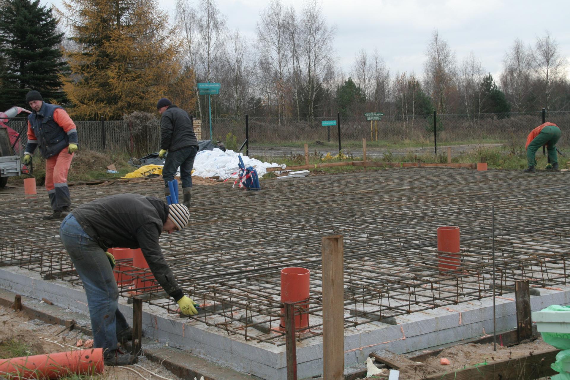Budynek posadowiony na warstwie zagęszczonego piasku grubości 50 cm i na warstwie chudego betonu 10 cm. Jako fundament zastosowana jest płyta żelbetowa grubości 30 cm. Ściany konstrukcyjne wykonane z bloczków silikatowych gr. 25 cm , ściany działowe z bloczków silikatowych gr. 12 cm.
